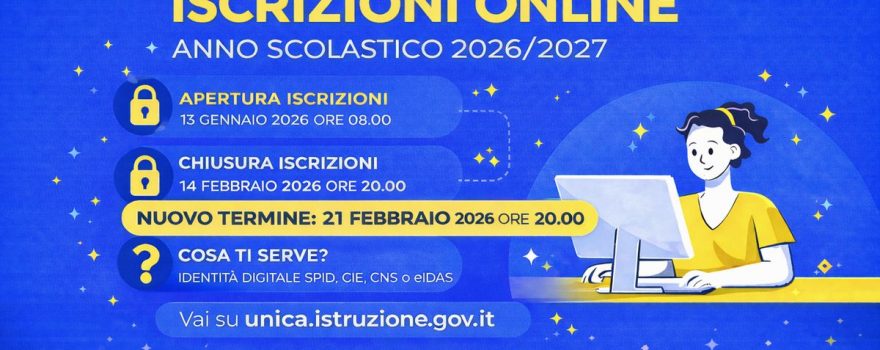 Si Comunica che il M.I.M., con nota prot. n. 33781 del 12/02/2026 ha disposto la Proroga del termine delle iscrizioni